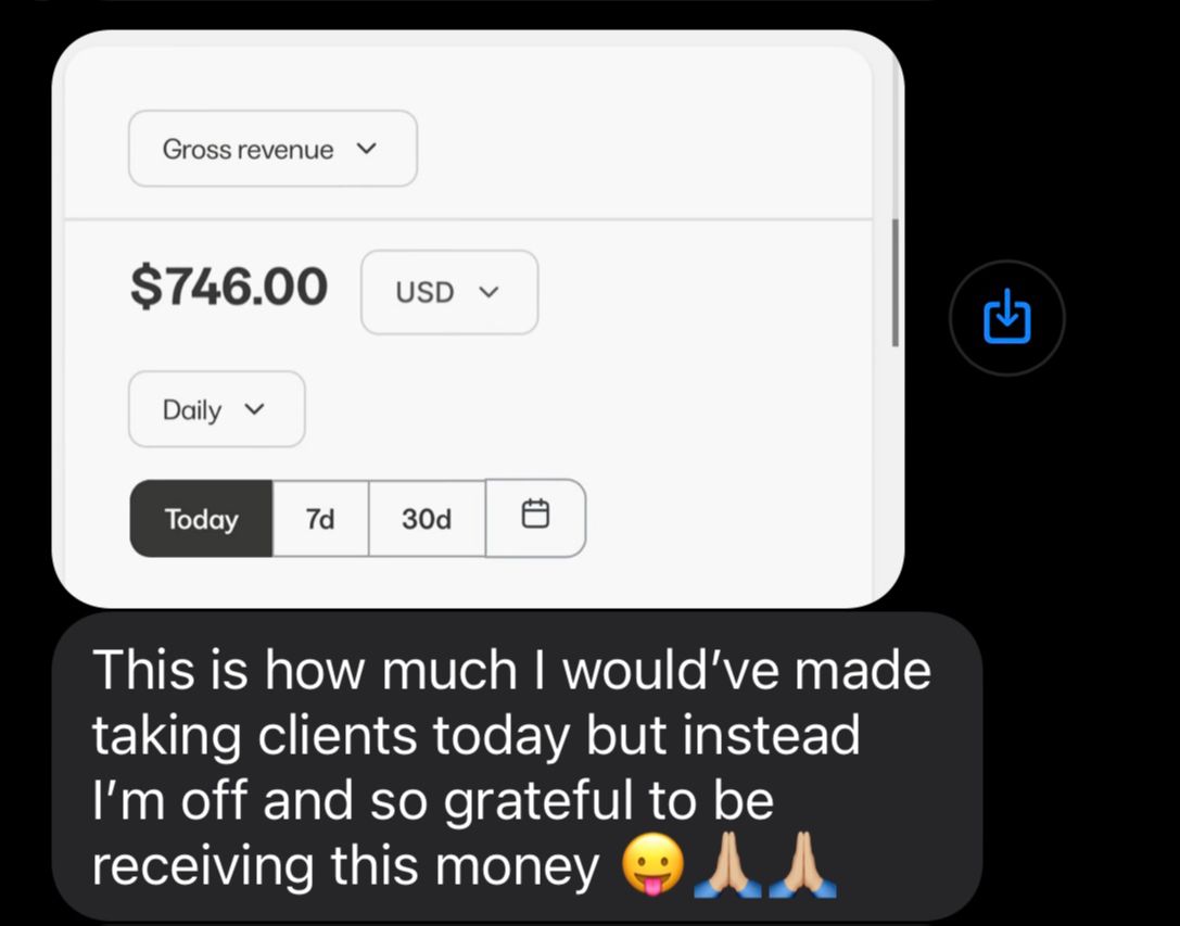 Now, let's set this up on autopilot so you can say goodbye to long days and hello to a day off making $1000+. With my passive formula, a trust funnel, time sensitive offer, email set ups, freebies and community building, $1000 days will be your new every day reality. All while you sit back, take time to your self, spend time with your kids, and live a life at ease. Finally right? It doesn't have to be hard.